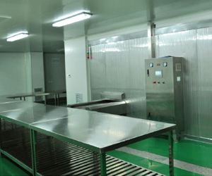 整臺(tái)設(shè)備設(shè)計(jì)制作均符合中華人民共和國(guó)«食品單體速)東裝置»及商檢出口要求。 庫(kù)內(nèi)外結(jié)構(gòu)均采用不銹鋼SUS304,全部為氬弧焊接。蒸發(fā)器采用大片距鋁合金組片管組,其他均為不銹鋼SUS304,充分蒸發(fā)面積,換熱效率高,充分考慮進(jìn)出貨溫度的影響,設(shè)計(jì)令結(jié)霜滯后。風(fēng)機(jī)為不銹鋼SUS304風(fēng)筒、支架、鋁合金扇葉高效率低噪音,軸流風(fēng)機(jī)采用外部集中水箱控制均勻小沖落,防止細(xì)菌繁殖,清潔衛(wèi)生,在庫(kù)內(nèi)沒(méi)有衛(wèi)生死角,不會(huì)藏污納垢,符合食品衛(wèi)生的要求 。